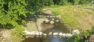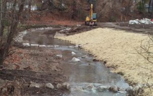 As the Environmental General Contractor, Environmental Remediation Contractor restored Fetter’s Run Park in Lancaster, Ohio. This stream restoration project involved clearing & grubbing land adjacent to the stream. We did Demolition of an existing bike path & pavilion then removal of an existing playground. Excavation of a stream bank to lay back slope to create a floodplain bench for the stream. We then installed in stream structures including, j-hooks, rock weirs & three clusters of eddy rocks. Next, we installed over 4,000 SF of articulating concrete block mat for slope stabilization. The project was finished by installing a new bike path followed by planting various trees & shrubs then seeding & mulching the entire site.