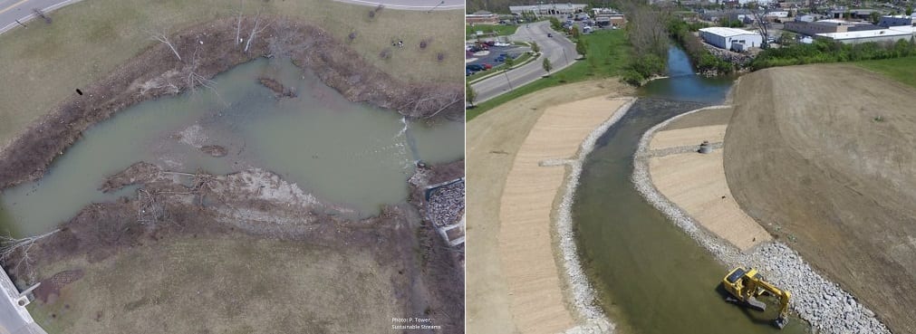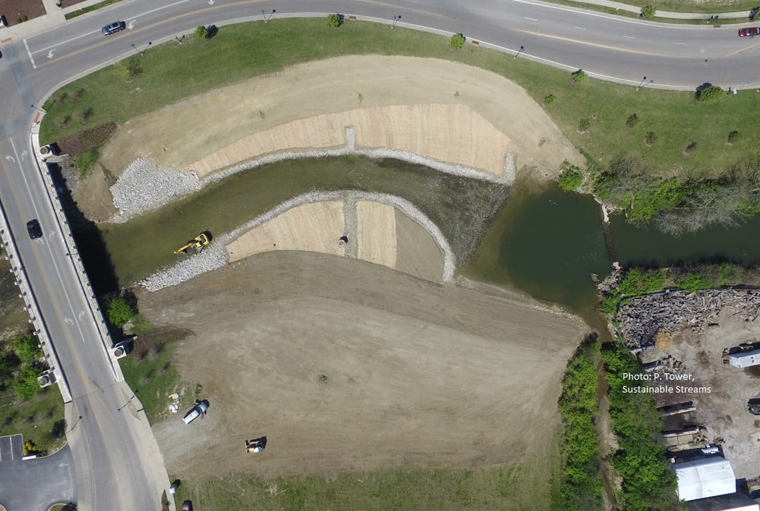 As the General Contractor, ERC completed the stream restoration of Mill Creek in South Western Ohio. Our scope of work included the construction of one (1) riffle, rock toe, buried grade control, grading, and complete site stream restoration. After mobilizing to the site ERC cleared and grubbed the entire site and then excavated 2,900 CY of soil. In order to align the stream and to slope the stream banks, ERC imported over 1,525 tons of rock including various riprap and native streambed material. The site was finished by planting trees and installing 574 live stakes.